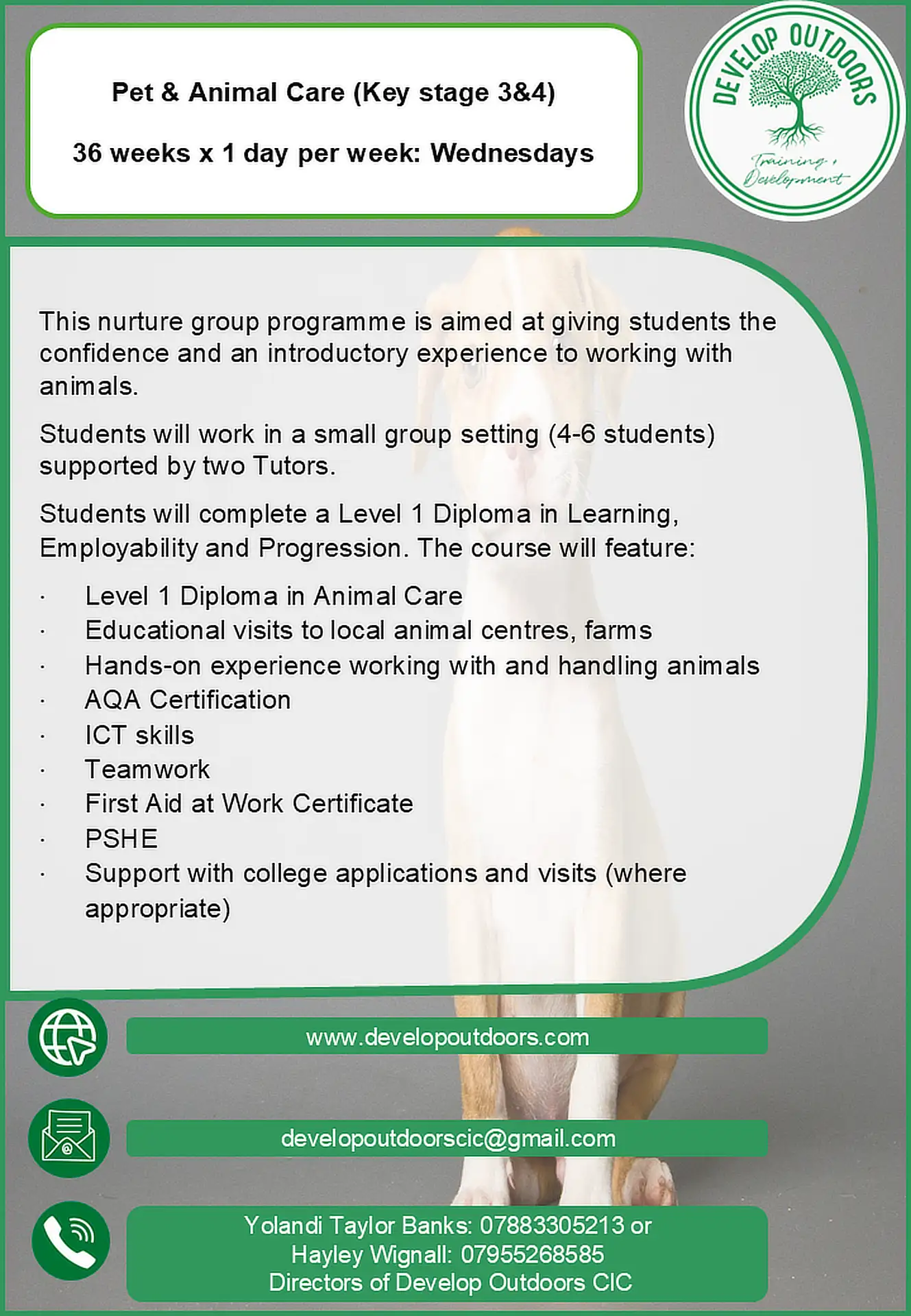 This nurture group programme is aimed at giving students the confidence and an introductory experience to working with animals.